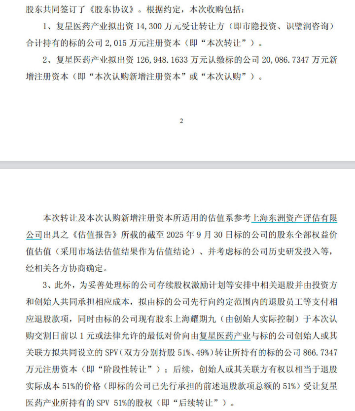 该公司称,12月15日,复星医药控股子公司复星医药产业与绿谷医药、其现有相关股东(吕松涛、耿美玉、上海耀期九、市隐投资、悬壶咨询、识璧润咨询)等共同签订《投资协议》;同日,复星医药产业还与标的公司及其本次收购完成后的标的公司相关股东共同签订了《股东协议》。